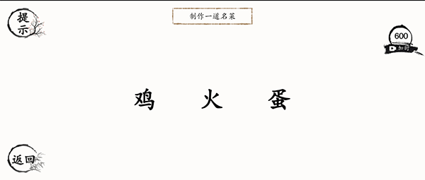先将“火”字拖拽至“蛋”字的末尾,接着把“鸡”字拖到“蛋”字的上方,随后发生爆炸,最终形成鸡丁堆。