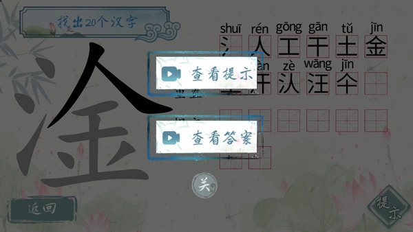 3、玩家需要从一个汉字当中找出20个汉字。