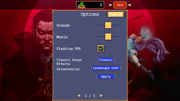 1、启动吸血鬼幸存者手机版本,轻点右上角的option。