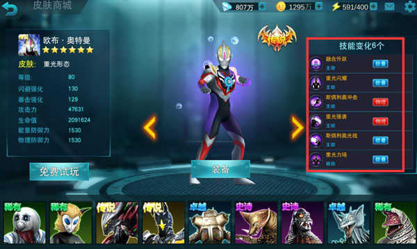 6、于《奥特曼传奇英雄》里,收集齐300个碎片,就能兑换赛罗奥特曼的专属皮肤——无限形态。