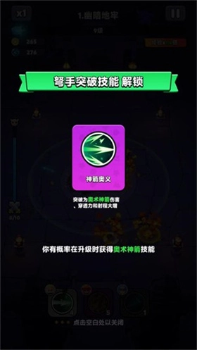 2、经验条位于屏幕上方,当经验条达到满值时便会升级,升级后能够挑选新的技能。