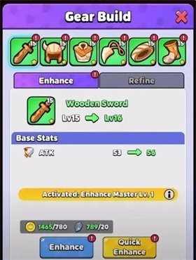4、当关卡数逐步提升,游戏会解锁英雄装备这一功能。起初,玩家获取的装备品质较低,属性提升幅度较小,然而随着游戏难度增加,便会掉落更为高级的装备。