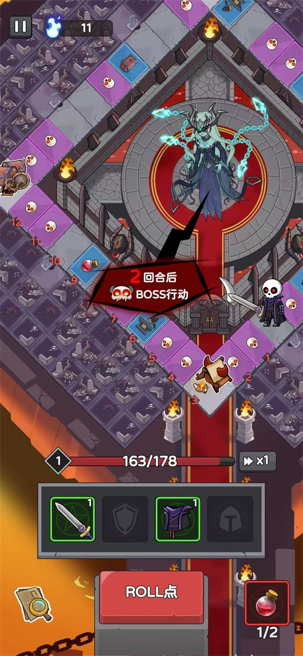 2. 轻点“roll”,掷出骰子,获取前行所需的点数。