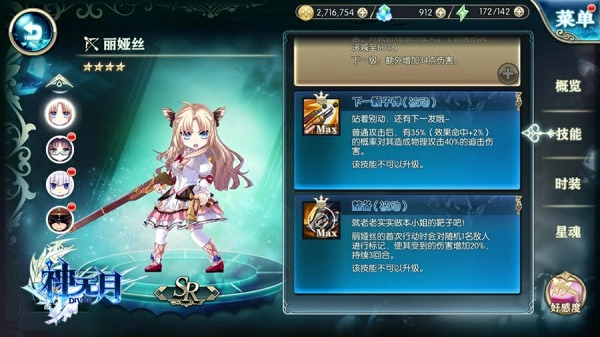 在《神无月》剧情里,丽娅丝身为科技浮岛麦格亚斯的大小姐,尽管身份显赫,却毫无那种趾高气昂的傲慢姿态,反而是个十足的自来熟,无论对方是什么品阶,都能与之愉快玩耍。如此人设,不管在剧情中还是现实里,都收获了极高的人气。丽娅丝不仅人设出众、颜值颇高,其声优更是邀请到了在演绎傲娇系萌妹子方面被公认为顶尖的竹达彩奈。而且,她的养成难度不算高,特别是在灵魂石收集上,除了通过解锁好感度日记等途径外,完成冒险世界的星星收集任务,还能一次性解锁大量灵魂石呢~