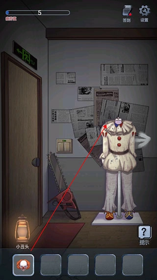 5、返回后把小丑的头部安装好,这时会看到掉落的密码本。