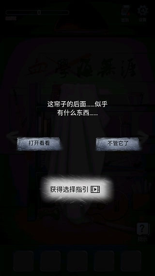 4、随后切换至右边场景,拉开布帘获取小丑的头,选择“打开看看”。(此处会有贴脸画面)
