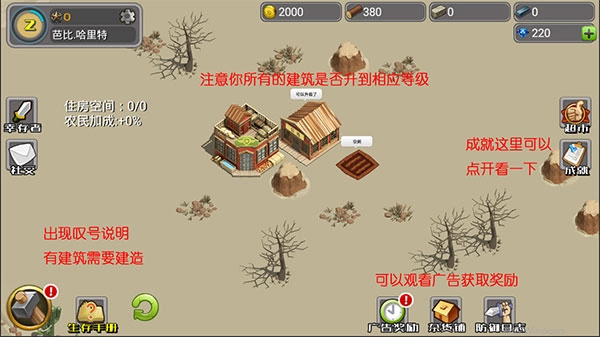 点击左下角的建造按钮,就能建造各类建筑。像帐篷,能为幸存者提供住所,还可产出金币;农田能够种植作物;木材厂可以生产木材;招募中心则能招募幸存者等。