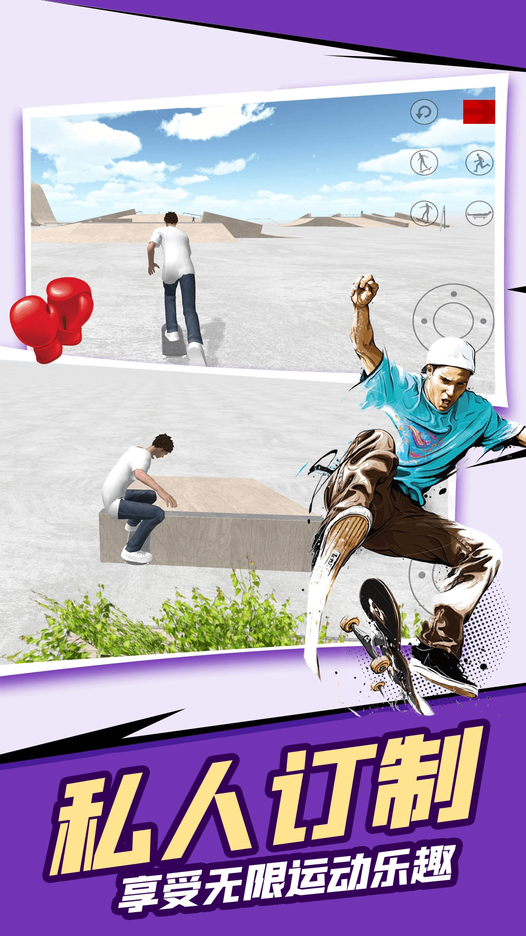 2、挑战模式设置了丰富的关卡任务,考验玩家的滑板技巧和反应能力,用实力完成各种难度的挑战。