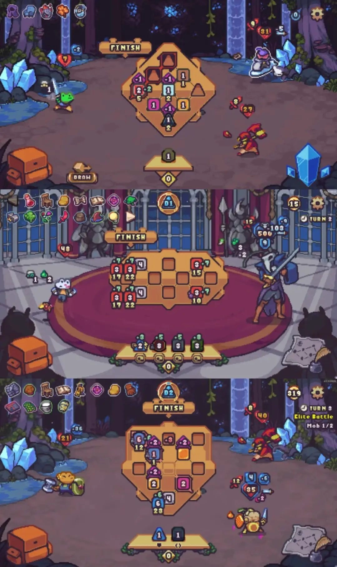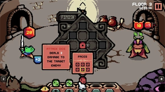 4、放入骰子后,点击“finish”,即可启用骰子效果。成功击败当前层数的怪物,就能前往下一层。