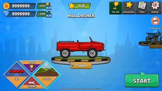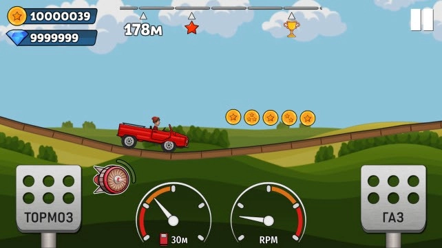 类似登山赛车那样的休闲闯关游戏,解锁更多赛车去闯关,收集沿途金币!