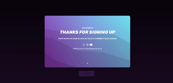1、访问mo.co:https://moco.supercell.com/en/ ,然后点击左下角的“SIGN UP FOR BETA”选项。