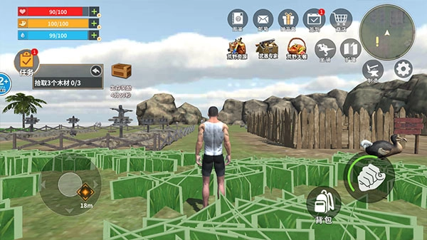 2、和我们经常操作玩法类似,左下角轮盘控制角色移动,右侧分别是背包和攻击按钮,在空白区域滑动屏幕就可以控制旋转视角啦。