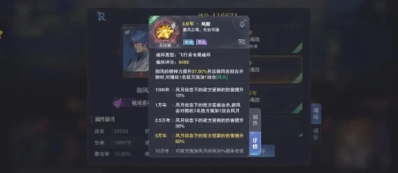 3、御风的要求是6星,第一魂环我们带邪虫系,推条加攻击力,很实用的一个技能,带飞行系,增伤效果60;