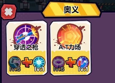 优先把手枪升级至5级,当达到5级后,能够进化为奥义 - 穿透之枪,接着再进化为奥义 - A.T力场。在升级过程中,要是没有可供升级奥义的技能,就选择护身手里剑。护身手里剑的优势在于它攻守兼备。总之,有奥义技能就优先凑奥义,要是没有,就看看能不能选护身手里剑,其他的技能随意选择即可。