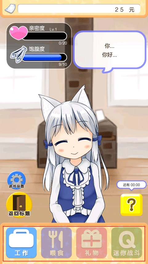 这款游戏的玩法主要包含工作、喂食、礼物以及迷你战斗这几类。