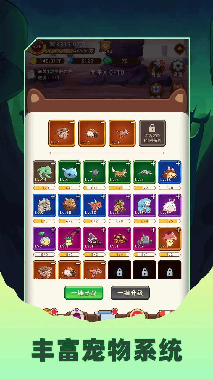 1.在闯关的过程中,也能够不断地收集各种强大的宠物,提升宠物的实力。