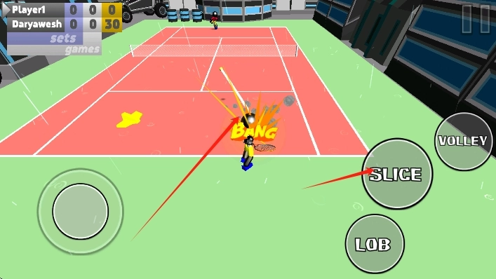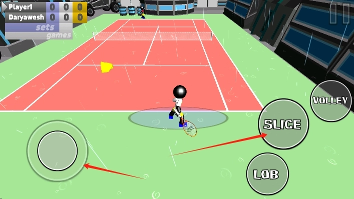 1. 控制基础火柴人在硬地赛场上进行首次发球,借此熟悉挥拍的时机以及移动的操作。