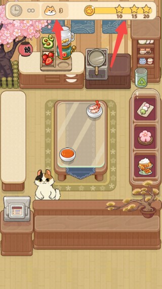 6、上方会呈现剩余顾客数量,右上方则为游戏通关星级。