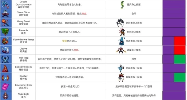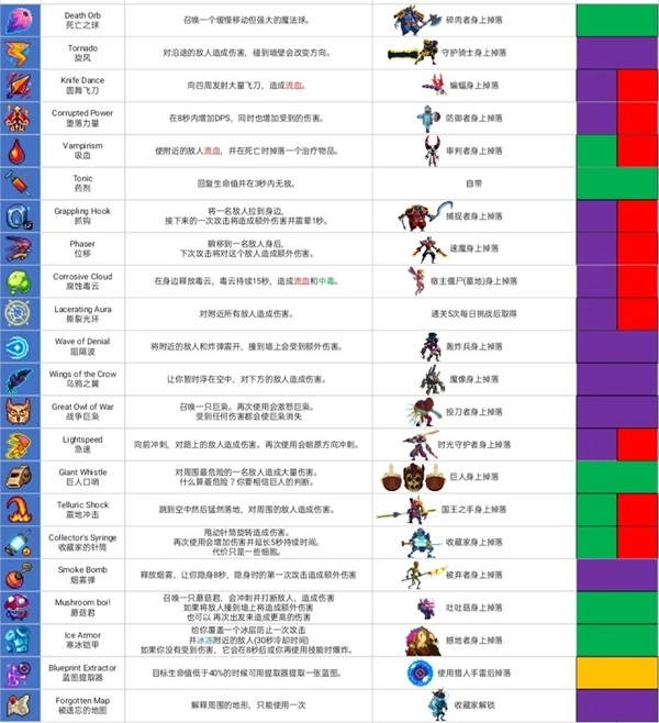 以下图片为道具与武器的图鉴。
