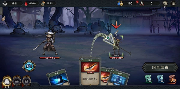 3、踏入关卡展开战斗,打出你手牌里的卡牌来战胜敌人。打出每一张手牌都需消耗行动力,具体消耗的行动力数值会在牌的左上角标明。若牌的费用显示为X,那么将会一次性消耗掉剩余的全部行动力。需要注意的是,你所拥有的最大行动力为10点。