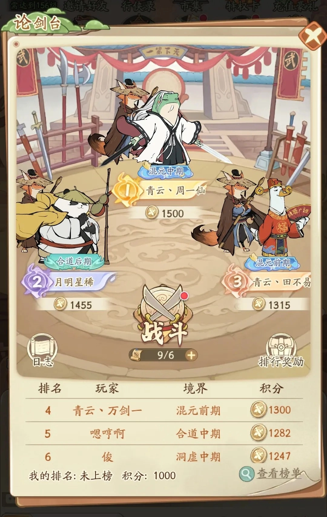5、要是实力差距过于悬殊,就别勉强去争第一了,拿个第二名也可以。等到下周,再努力冲击第一名,完成相应成就。而且华山之巅每天的奖励都相当不错,排名能往前提就尽量往前提。