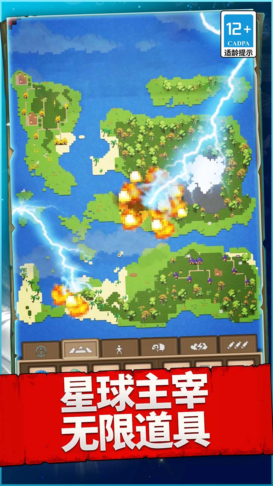 游戏为玩家准备了多种多样的元素与工具,可供玩家挑选,其中涵盖地形生成工具、生物生成工具、元素组合工具等。