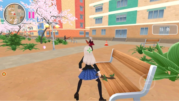 3. 通过操控左侧的虚拟摇杆来控制角色移动,如此便能在校园里自由探索,与行人交流或者和物品产生交互,进而触发各类剧情故事。
