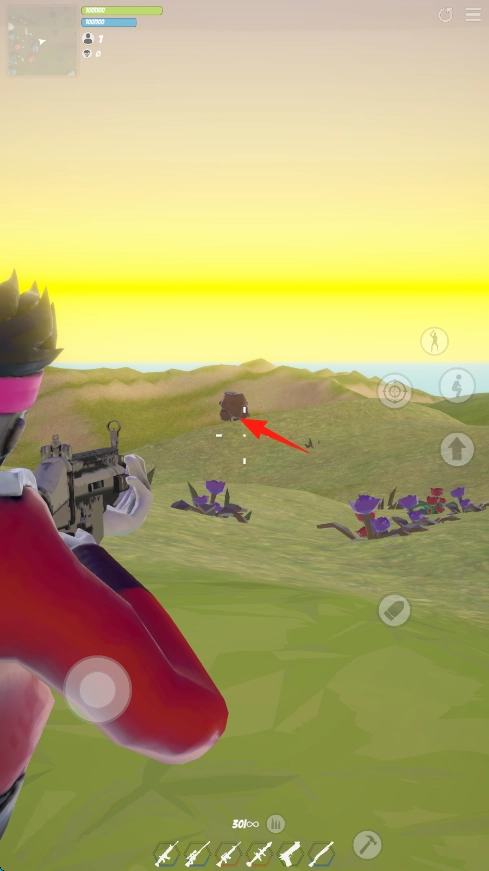 2、依照小地图左上角的指引,去寻觅带有箭头标记的目标物,比如箱子,在行进过程中收集物资并应对敌人。