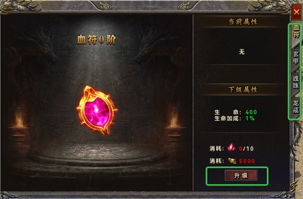 1. 玩家能够对血符、魂珠、玄甲、龙戒等装备进行升级,各装备的属性加成存在差异,玩家可按需针对性升级。