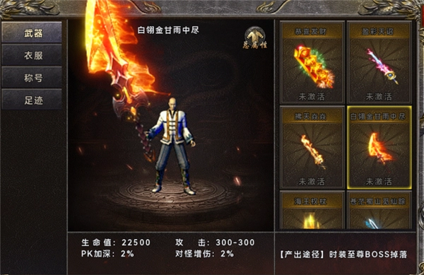 4、激活各类武器、衣服、称号等,能够提升生命值、攻击值以及对怪物的增伤等属性。