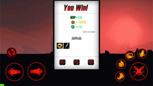 5、稍等片刻等待加载完成,进入游戏后画面如下。该游戏采用横版操作模式,左边的方向键用于控制角色左右移动,右边则设置了攻击键以及技能键位。