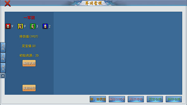 2、随后我们会进入军团管理界面,这时点击右下角的【购买将领】按钮。