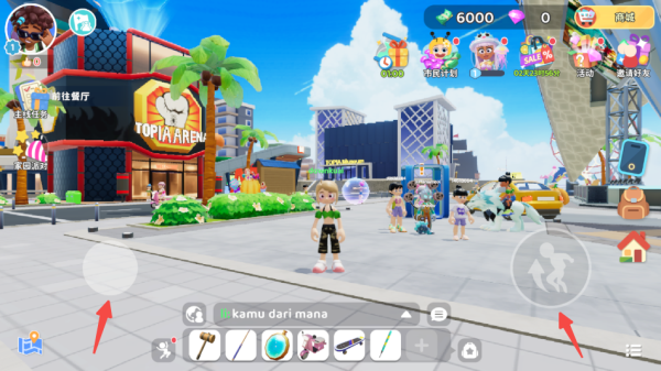 1、开启游戏后,借助操控盘来掌控角色的移动。