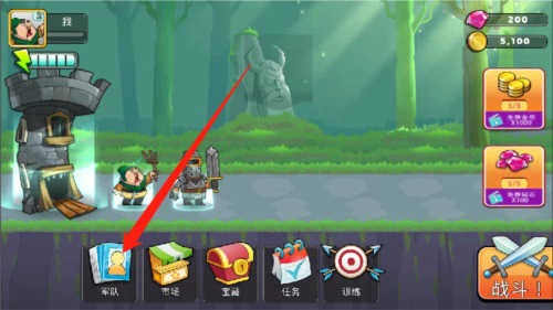 1、当进入“一起来拆塔”游戏后,第一步要点击界面左下角的【军队】。