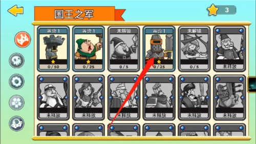 2、在此处,我们能够看到目前已拥有的兵种,从中挑选一个你想要升级的兵种。