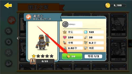 3、在此处,你便能够看到该兵种的属性。点击下方的金币选项,即可提升兵种等级。