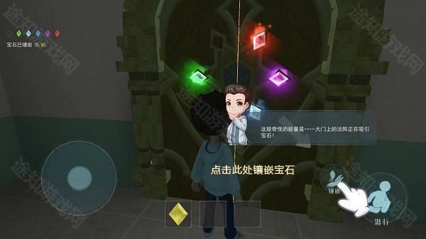 4、抵达大门后,点击此处嵌入宝石,即可完成逃生!