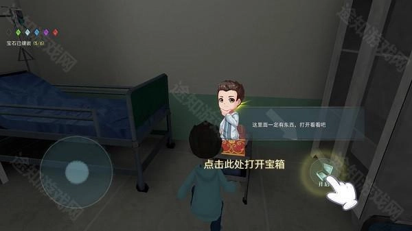 3、想要打开逃亡的大门,需在门上镶满6颗宝石。因此,你得前往荒废的医院,寻找宝箱并开启它,带着宝箱里的宝石,再去逃生大门。