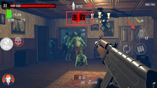 3、成功击败僵尸后,借助手榴弹来清理扎堆的僵尸,以此提高分数并加快清除怪物的效率。同时,要留意剩余目标数量,从而更高效地推动关卡进程。