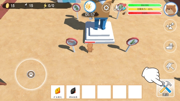 防守反击玩法:玩家在游戏初期需专注于防守以确保生存,随后通过升级科技来提升角色各项属性,最终击败指定目标怪物即可达成胜利条件。
