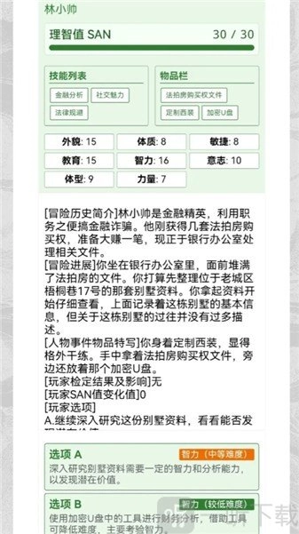 这款以克苏鲁神话为核心设定的跑团模拟游戏,允许玩家以自定义主角的身份开启一段沉浸式冒险。游戏巧妙融合现实与科幻元素,通过海量文字内容推动剧情发展,玩家的主要交互方式为点击操作与选项抉择。不过,密集的文字呈现容易造成视觉疲劳,长时间体验可能会产生枯燥感。