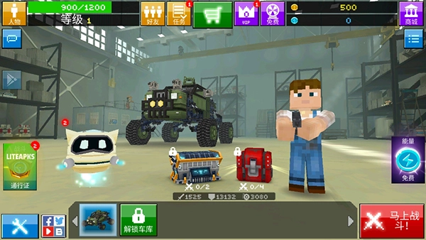在这个游戏里,你能通过获取不同的方块、武器以及配件,按照自己的想法打造出独一无二的战车。