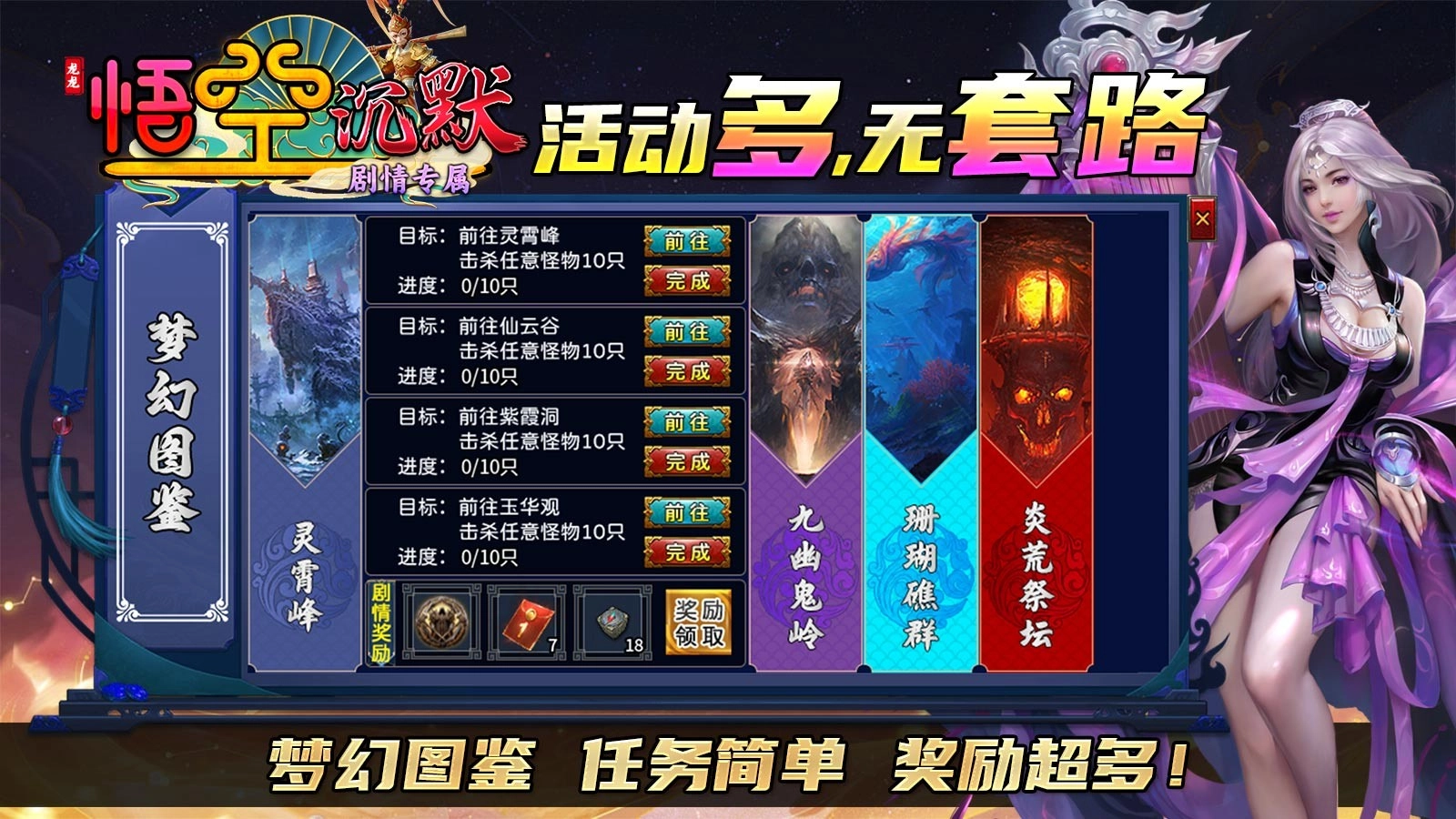 龙龙悟空沉默是一款以西游为背景的传奇冒险游戏。全新设计的角色为传奇战斗注入了更多新鲜感,专属剧情线带来了与众不同的游戏体验。游戏地图包含多样的生态场景,对应着不同属性的野怪与精英BOSS,玩家通过逐步挑战积累实力,而超高的武器掉落率更让每次冒险都能获得丰厚回报。