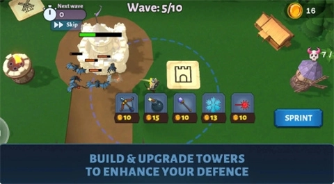 动态战斗玩法:玩家可在战场中自由移动,与敌人展开交锋,同时对塔楼布局进行优化调整。