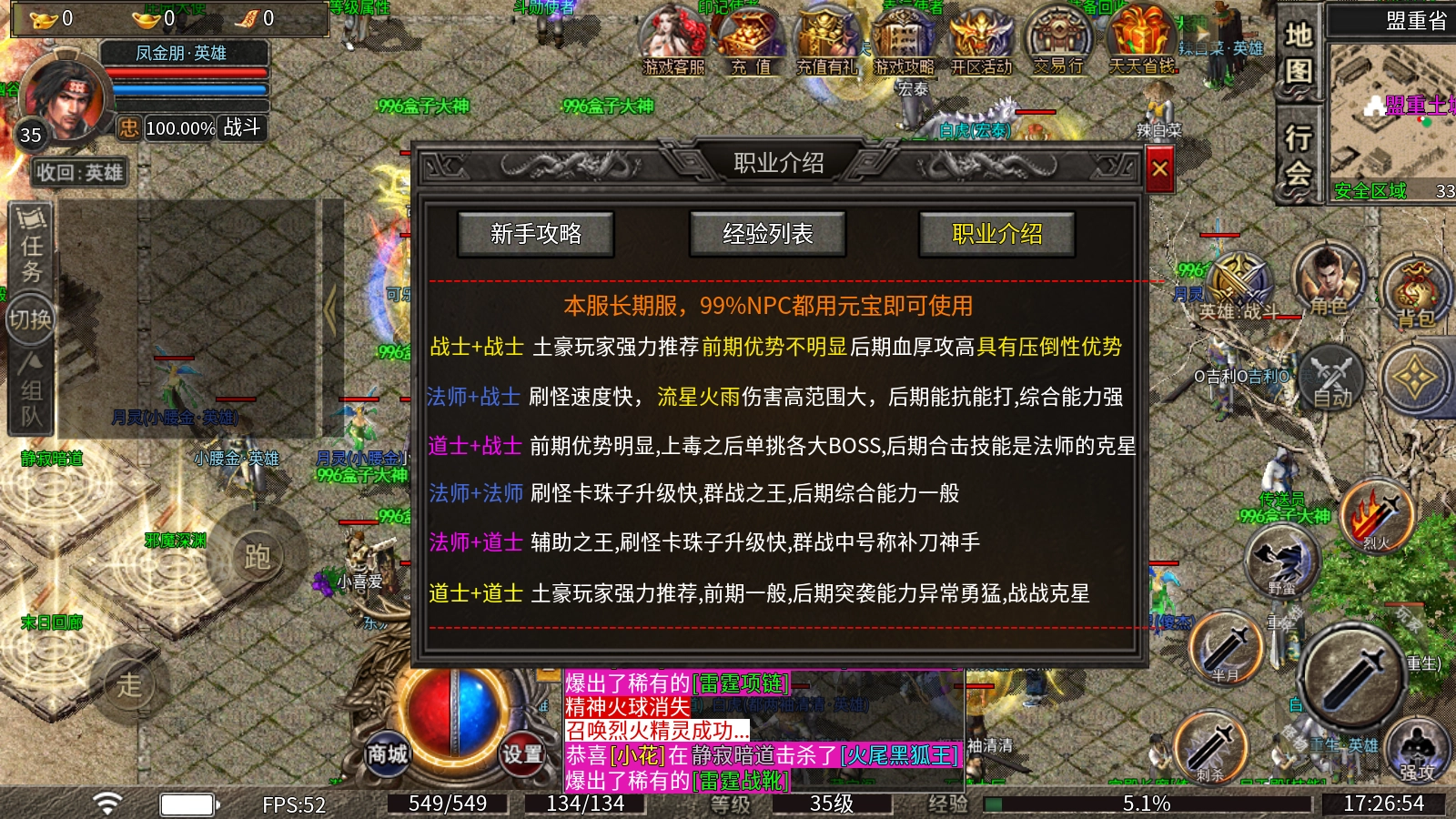 道士与战士的组合:前期优势突出,道士施毒后可单挑各类BOSS,后期的合击技能更是法师的天敌。