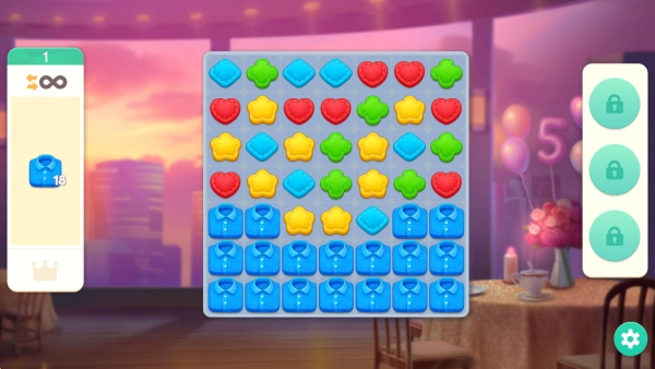 游戏由两部分构成,第一步我们要借助三消玩法来完成关卡挑战。