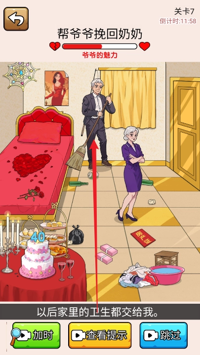 游戏里帮爷爷挽回奶奶的这一关,是既有趣又比较难的,下面就给大家带来这关的攻略