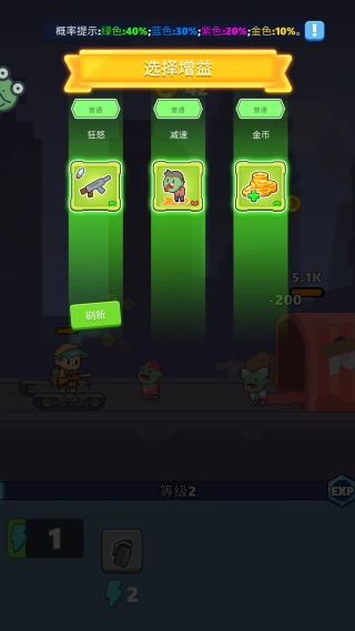 在等级2阶段,遭遇持械僵尸时,要让坦克保持移动状态并精准瞄准发起攻击,借助已选定的增益效果所提升的战斗能力,迅速完成清理任务。
