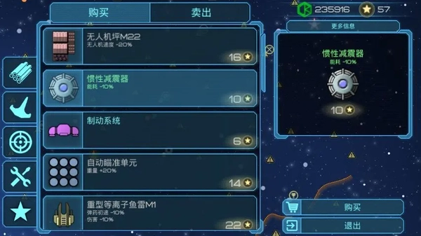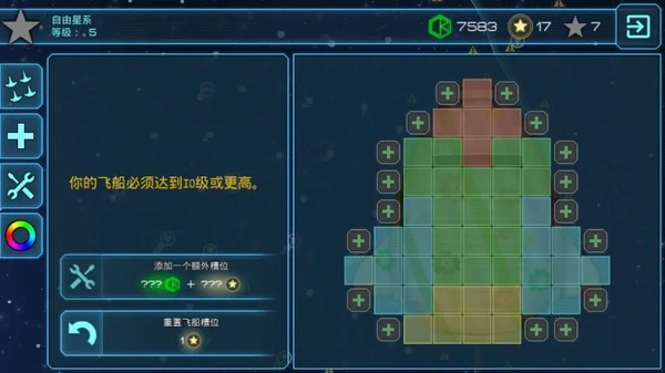 废弃空间站在初期阶段简直是“宝藏地”,装备、僚机都能拿到,运气好的话还会掉落星币,绿币的数量也很可观。接下来就可以着手改装飞船了:先把船上的功能模块解锁,电池带两个足够,多了用不完;盾甲根据实际情况适量配置,剩下的空间全装上纳米填充装置。等飞船升到五级时,记得回基地的船坞解锁一个引擎格位。