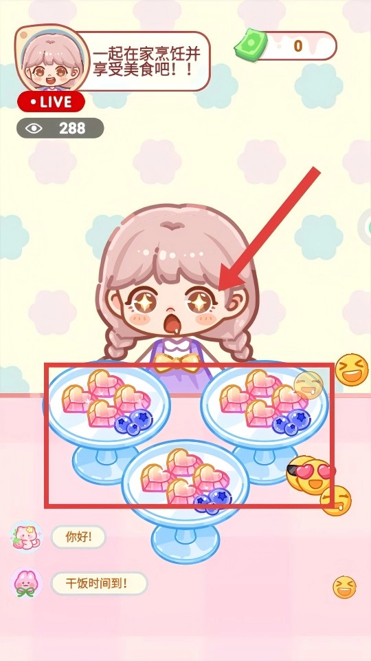 直播时请留意红框里的【观众请求】,按照需求点击【准备食物】按钮来制作相应的甜品。